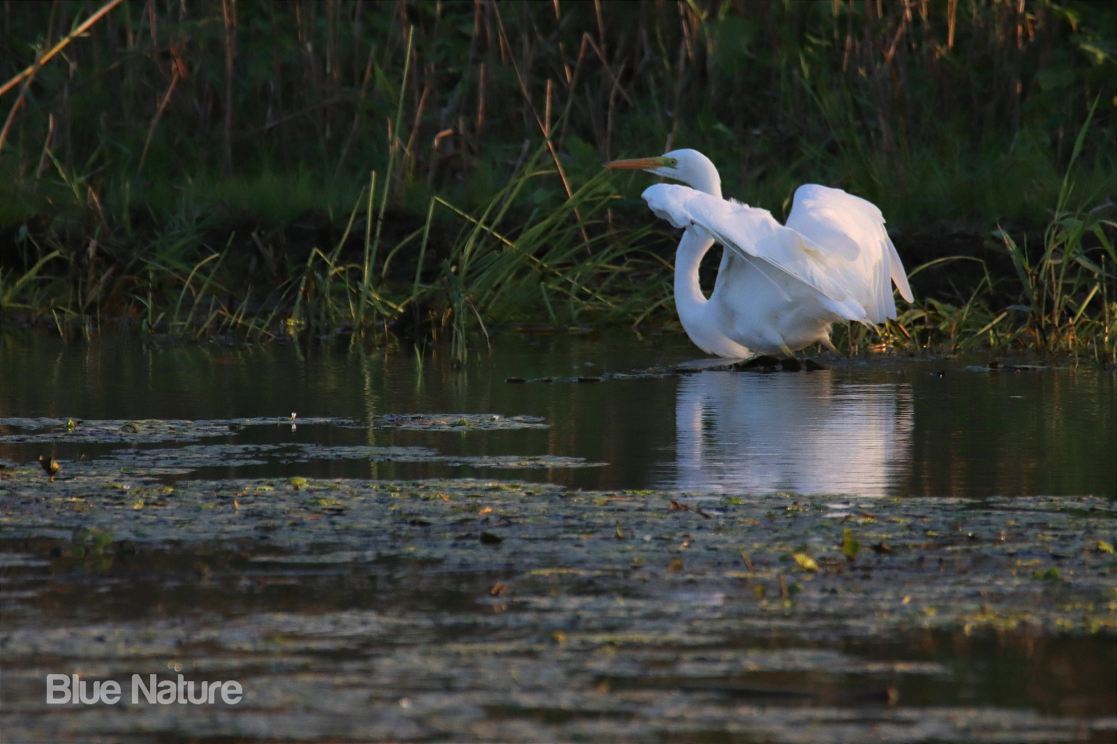 Siguiendo por el canal llegamos al primer destino, un gran lago con una alfombra enorme de lenteja de agua que estaba completamente llena de garcillas cangrejeras, cercetas carretonas, porrones pardos y fumareles cariblancos. Una autentica gozada. A la entrada del lago, y como si de un vigilante se tratase, un enorme adulto de pigargo parecía no perderle ojo a ninguna de las aves que se movían por la superficie del agua. Allí estuvo, en lo alto, hasta que nos fuimos. Que emprendió un vuelo adentrándose en la inmensidad del Delta.